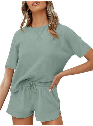 Amazon Com Women S Waffle Knit 2 Piece Outfits Crew Neck Long Sleeve Top And Jogger Pants Loungewear Pajamas Sets Clothing Shoes Jewelry